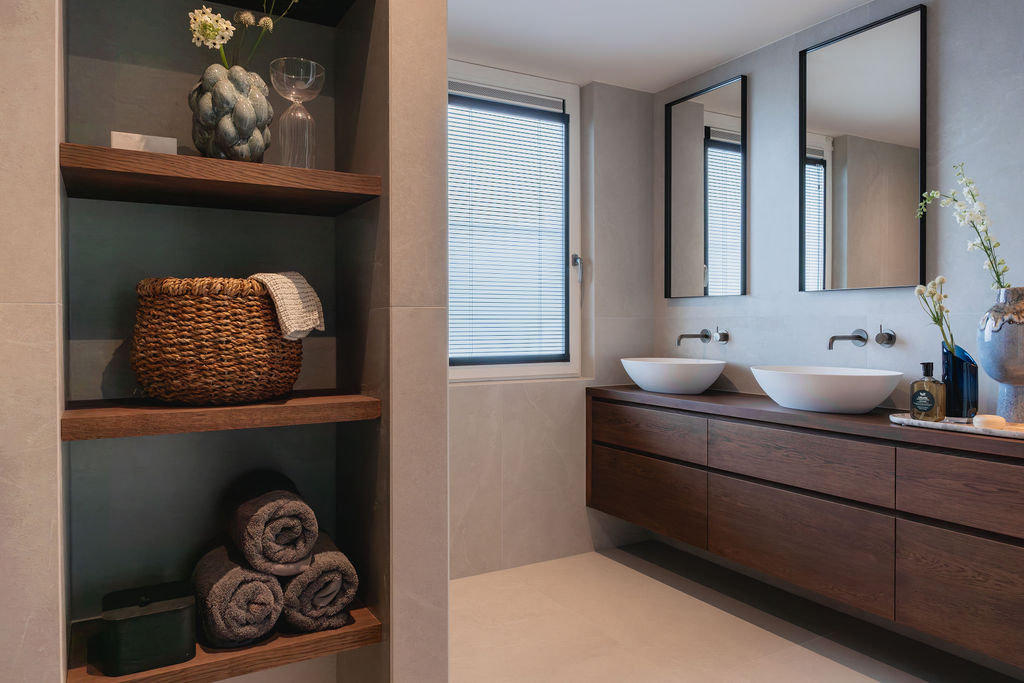 Deze moderne badkamer van Jan en Susan toont een unieke mix van moderne luxe en landelijke gezelligheid. Kijk mee en ervaar het unieke interieur.