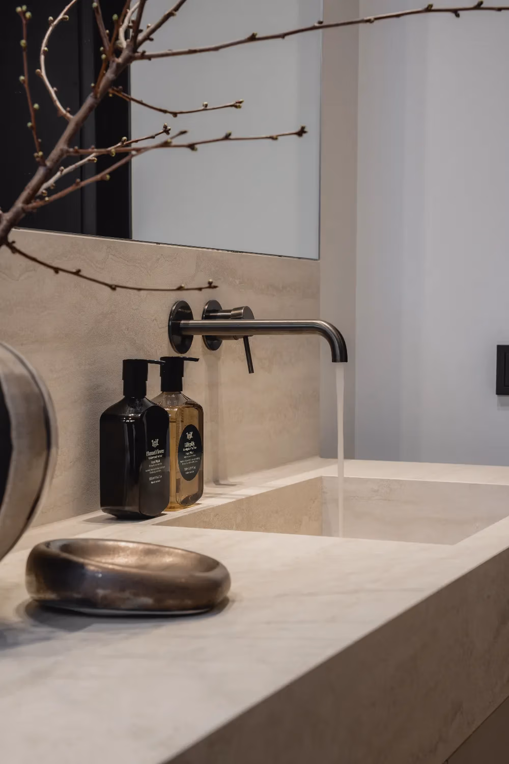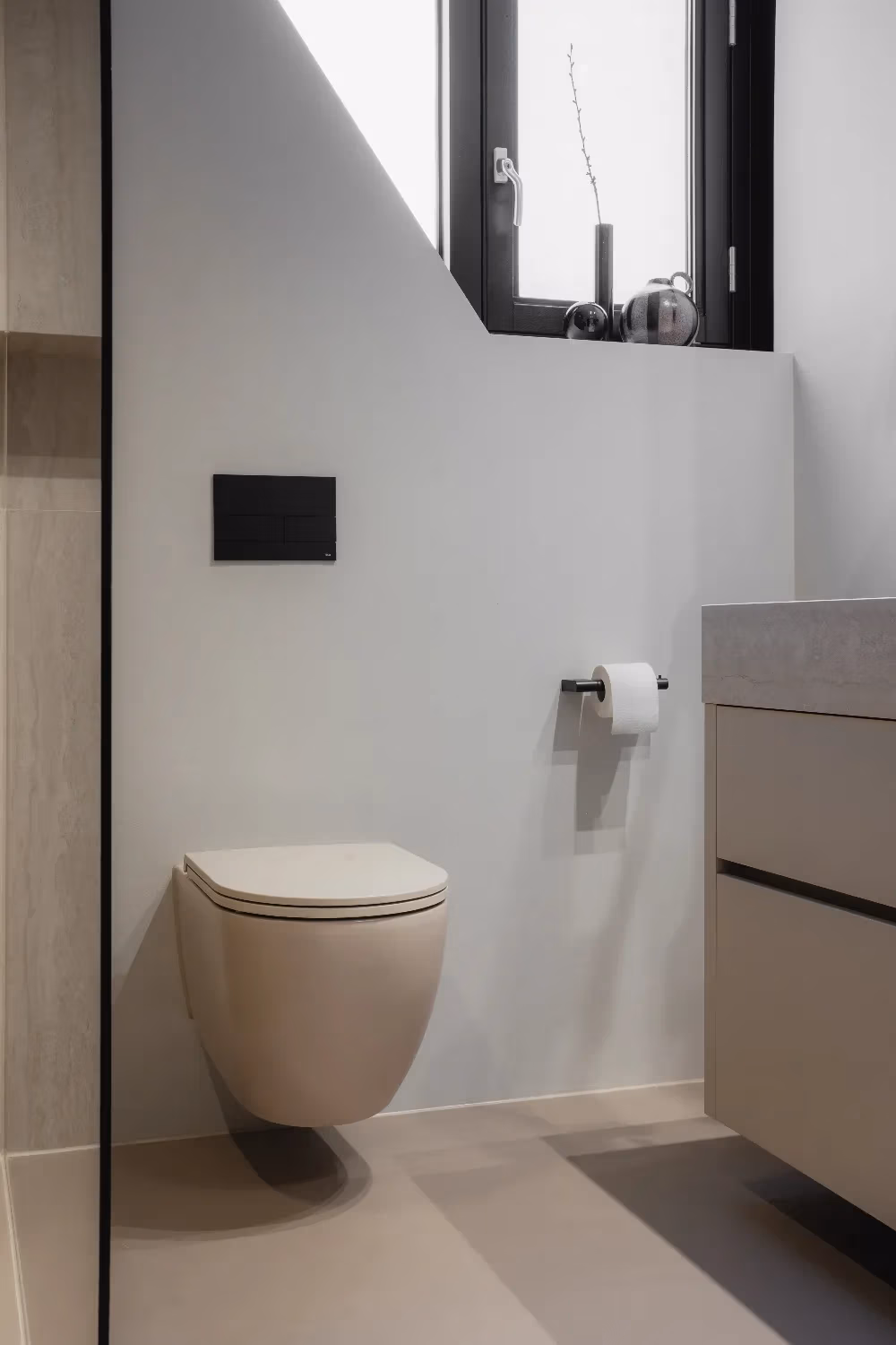 Door mijn ervaring in de bouw wisten we al goed wat we wilden, zoals grote slabs voor een rustige en strakke uitstraling. Het grote meubel van 260 cm en de ruime inloopdouche spraken ons direct aan. Vooral de douche met de kraan niet direct onder de douchekop vinden we ontzettend praktisch: je kunt de douche aanzetten zonder meteen nat te worden, iets wat dagelijks enorm handig blijkt te zijn.