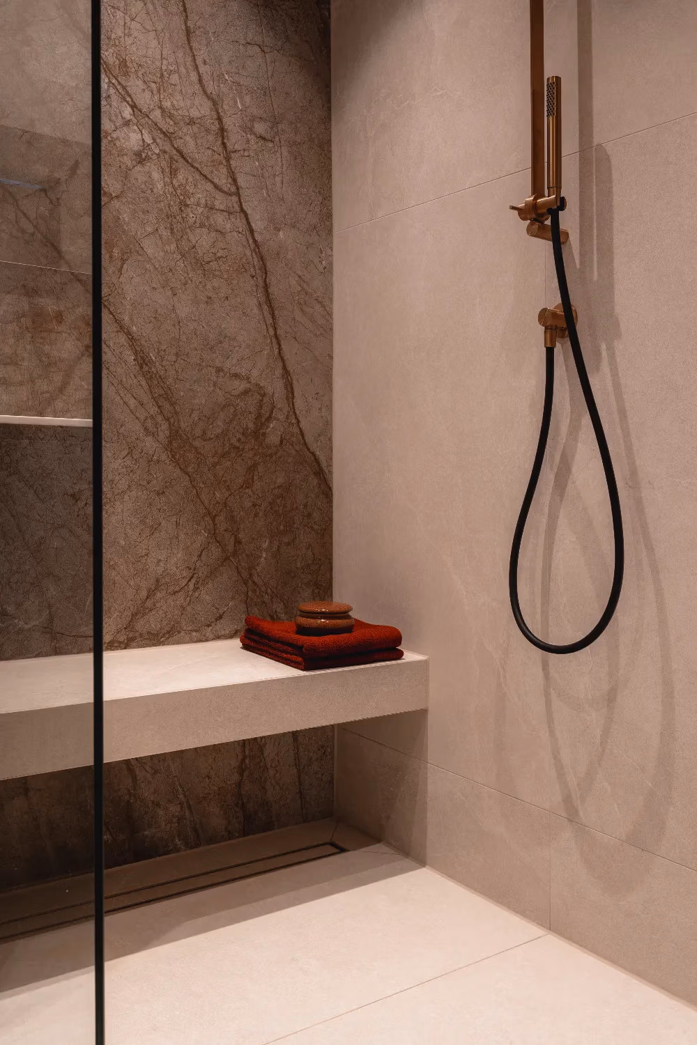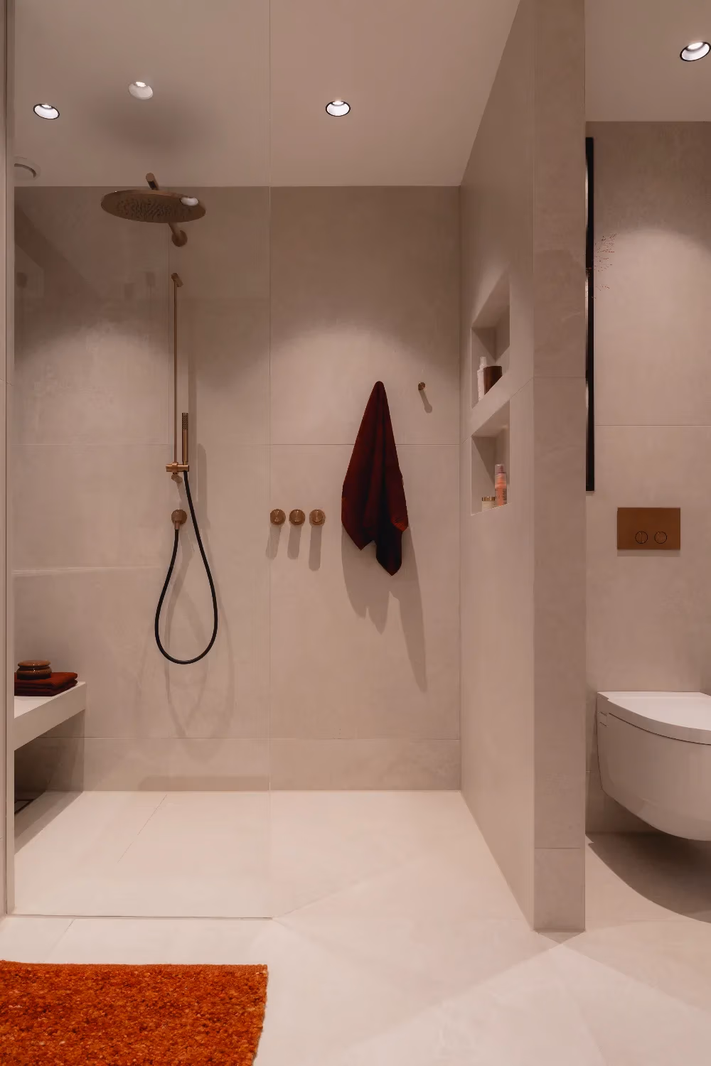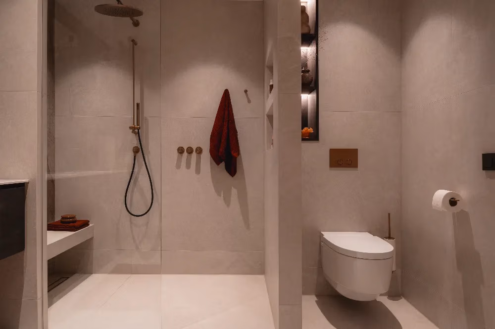 We genieten enorm van onze badkamer. Vooral het bankje in de douche is een favoriet, net als het bad waar we in de winter graag gebruik van maken. De badkamer voelt voor ons als een plek om echt te ontspannen en tot rust te komen.”