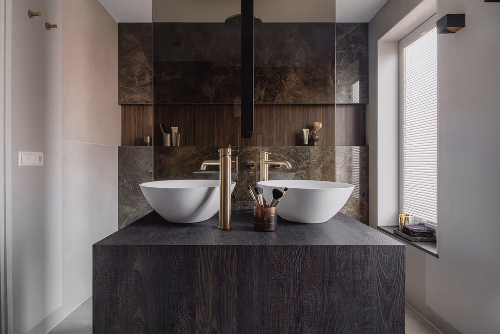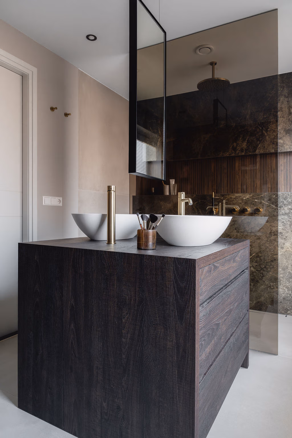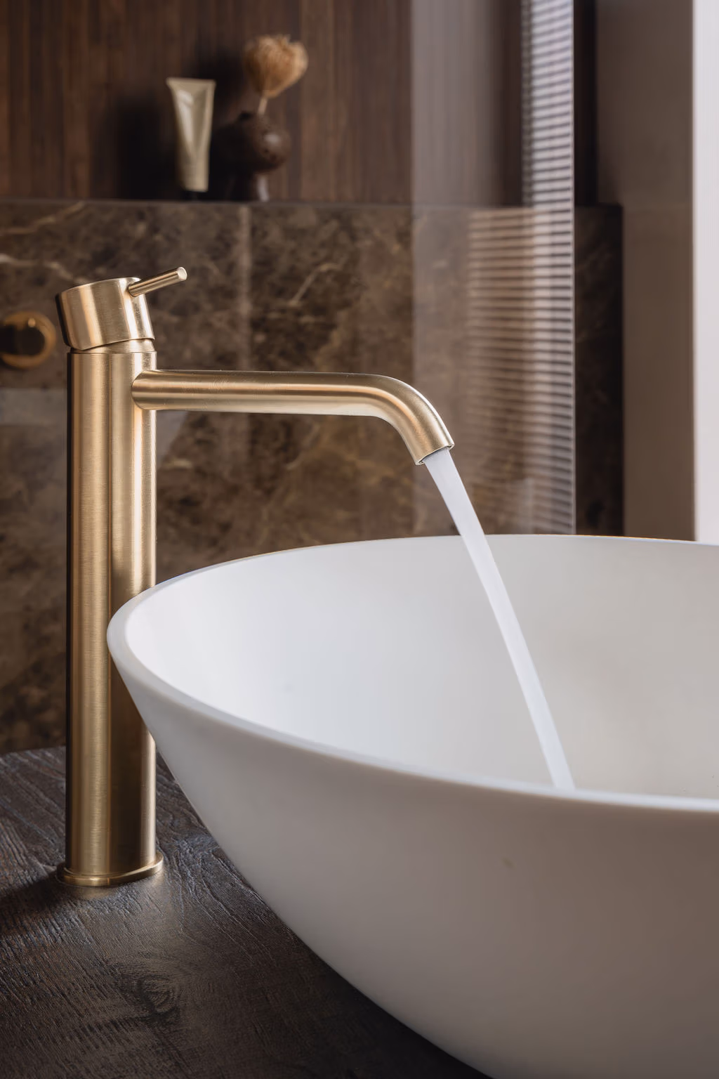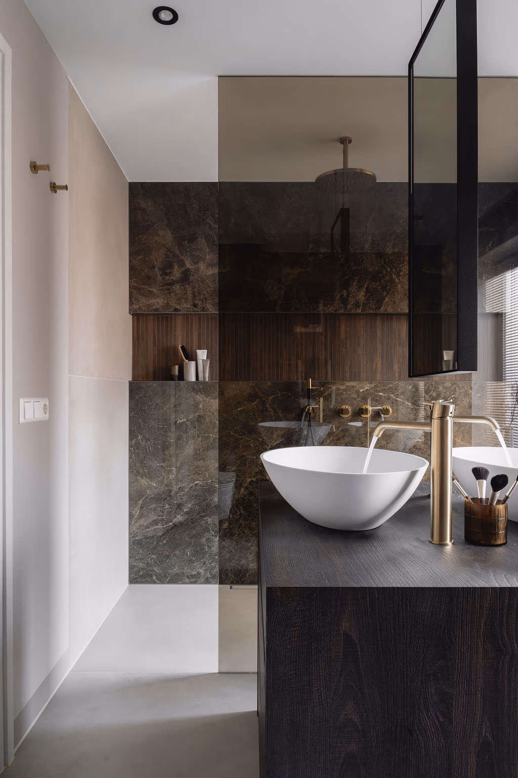 Voor de finishing touch is gekozen voor geborsteld messing kranen, die de badkamer een nog luxere uitstraling geven en het wellness gevoel compleet maken.