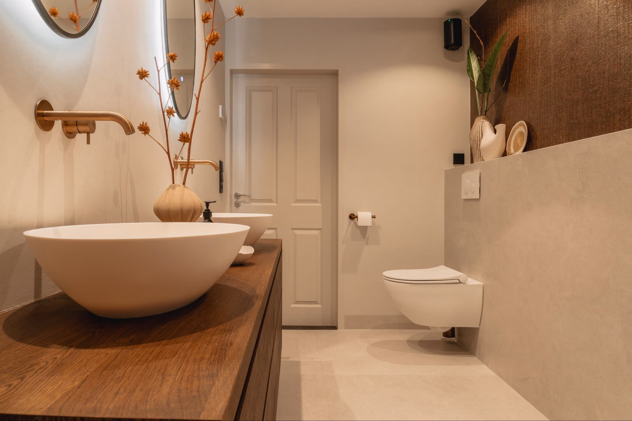 "Creëer een badkamer met een ruw en krachtig karakter"